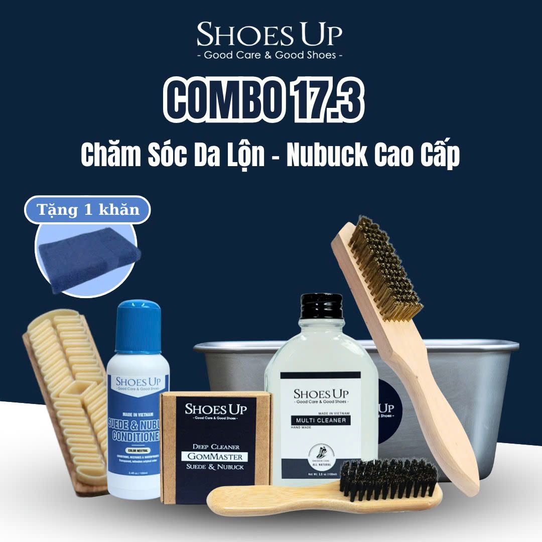 Combo 17: Chăm Sóc Vệ Sinh Da Lộn và Da Nubuck Cao Cấp chính là lựa chọn hoàn hảo giúp bạn làm sạch sâu, bảo vệ da lộn khỏi bạc màu, thô cứng và giữ giày luôn như mới!