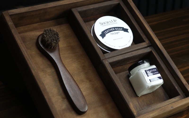- Vệ sinh nhẹ nhàng bằng Leather Soap – loại xà phòng chuyên dụng cho da thật, pH cân bằng, làm sạch mốc mà vẫn giữ ẩm cho da.