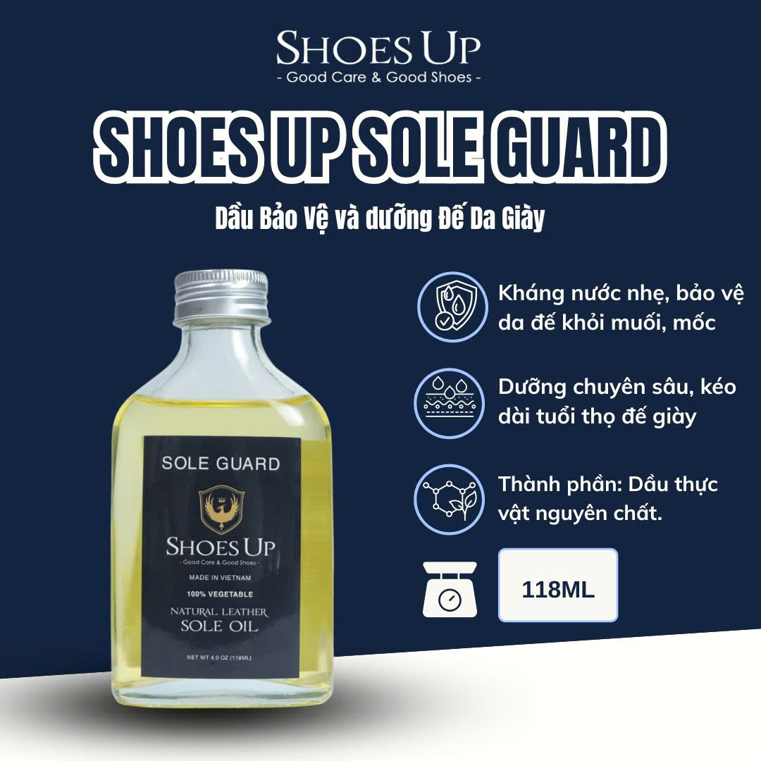 Sau quá trình nghiên cứu và phát triển cùng đội ngũ chăm sóc giày chuyên sâu nhất. Shoes Up tự hào xin giới thiệu tới cộng đồng Giày Tây - Giày Da một dòng sản phẩm đặc biệt quan trọng đó là : “Dầu bảo vệ và dưỡng đế da chuyên dụng Shoes Up Sole Guard “.