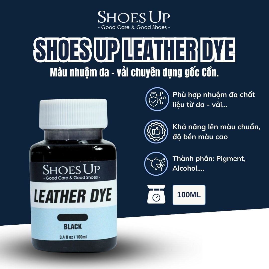 Shoes Up Leather Dye là sản phẩm màu nhuộm chuyên dụng gốc cồn dành cho quá trình nhuộm đổi màu và phục hồi màu đồ da, giày da…