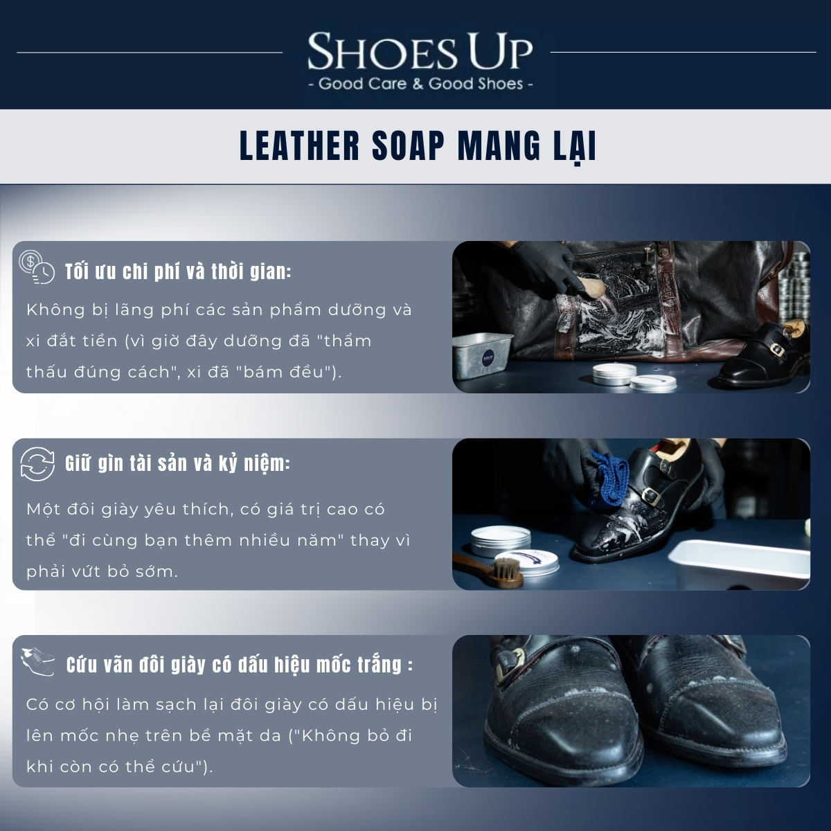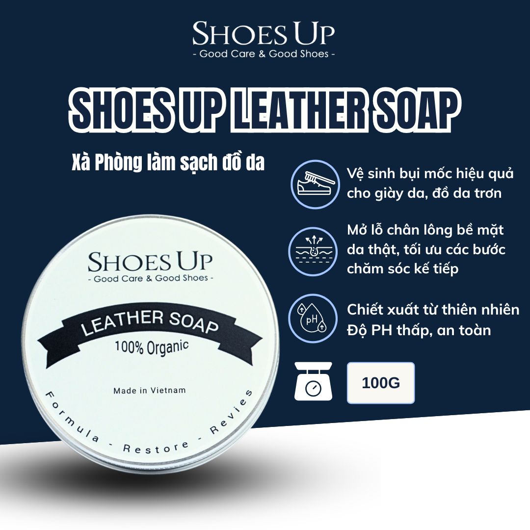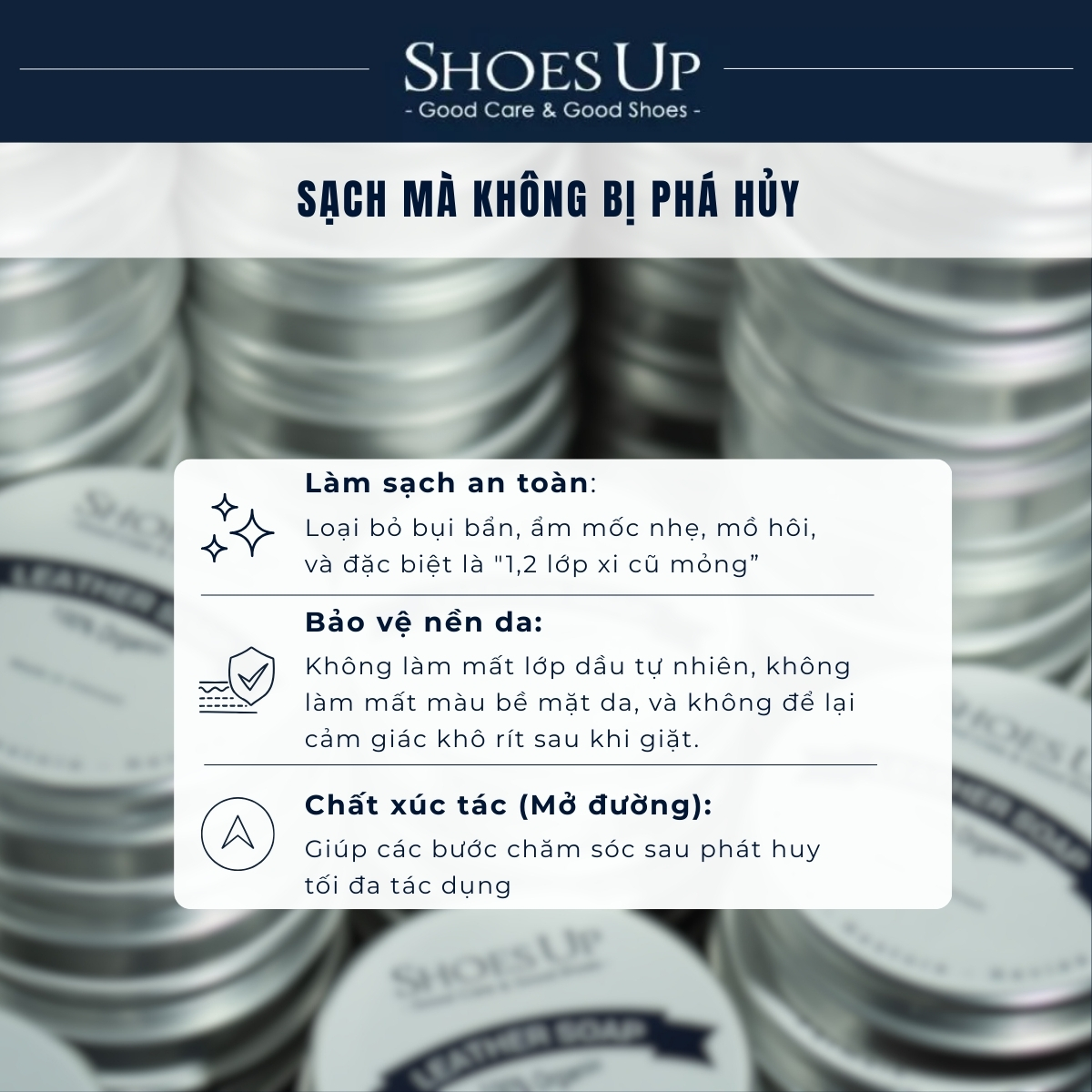 Leather Soap Shoes Up : sản phẩm xà phòng chuyên dụng được sử dụng để vệ sinh chuyên sâu cho giày da và đồ da, phụ kiện da.