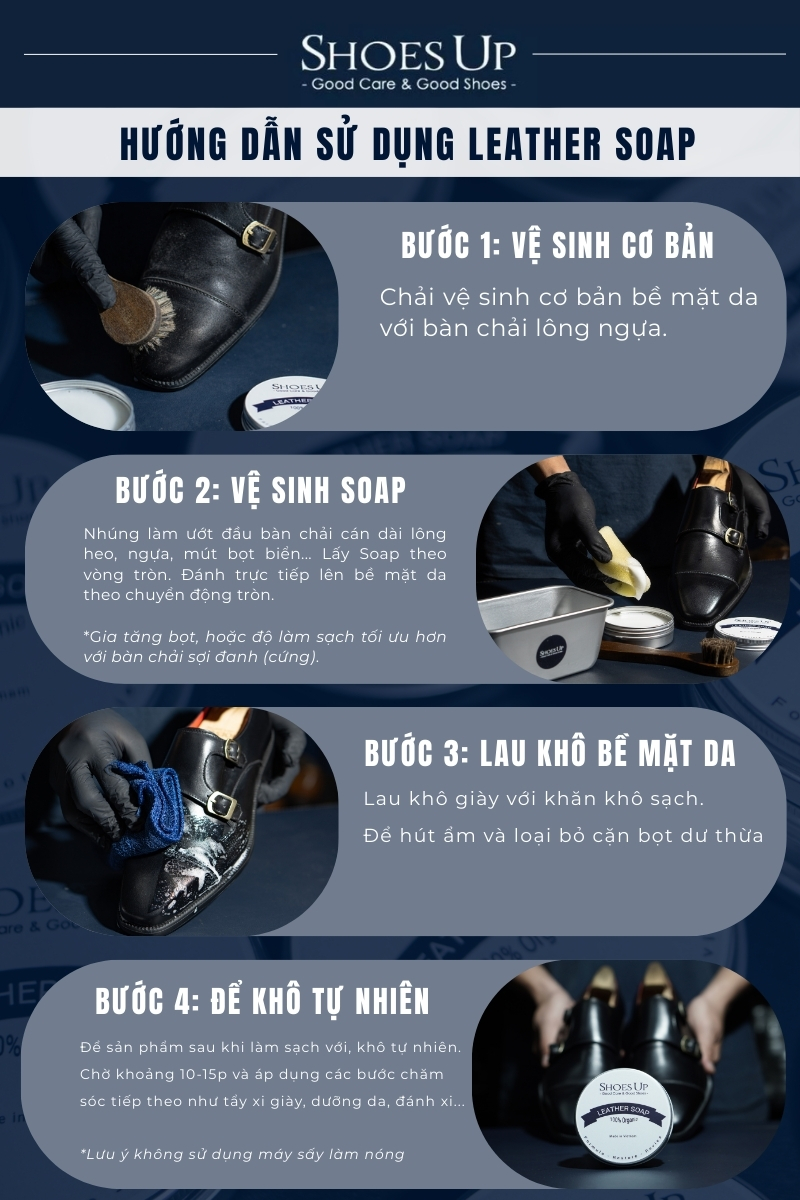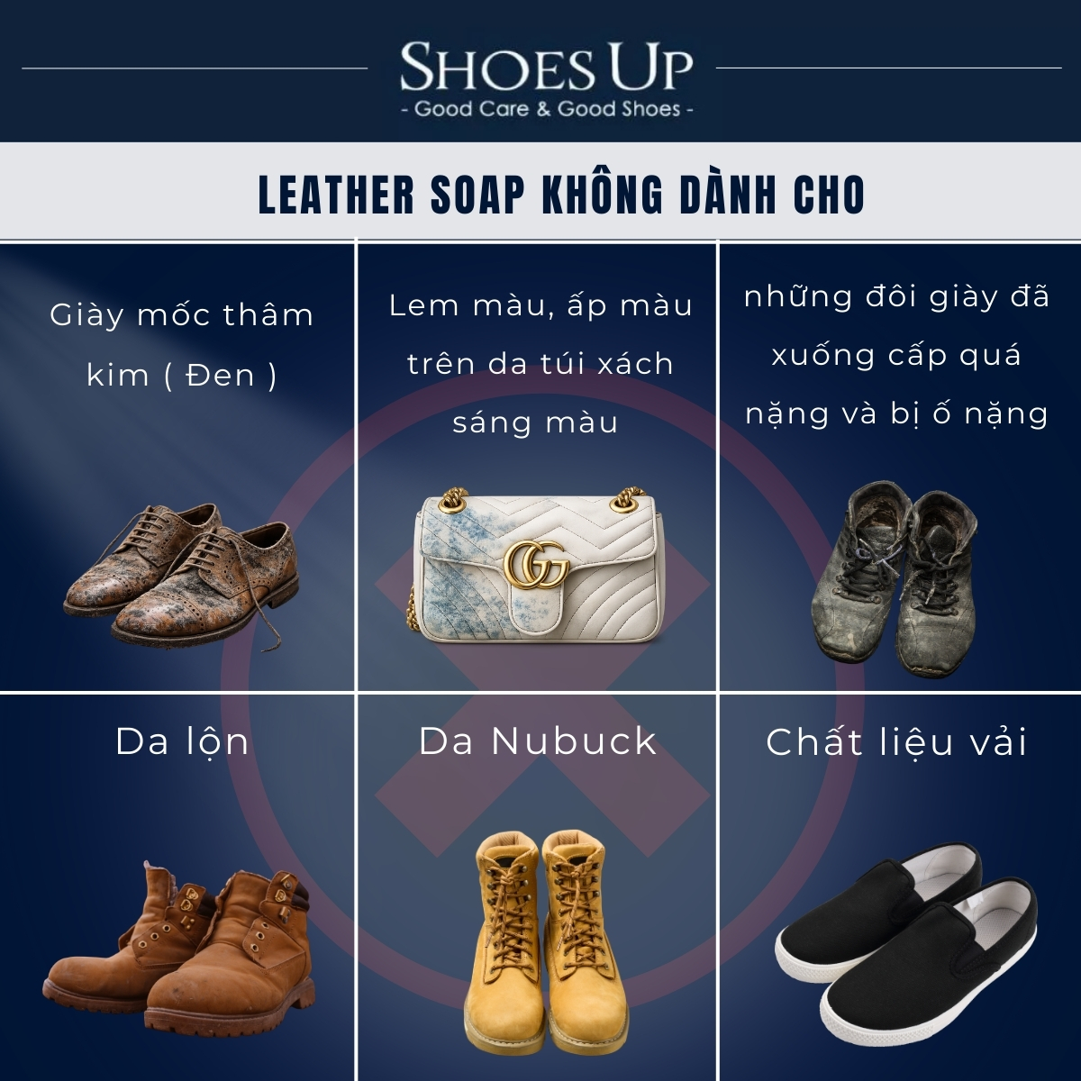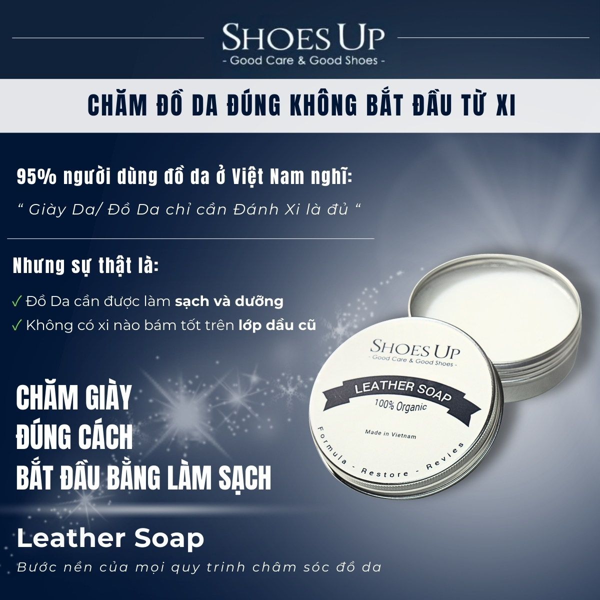 Leather Soap Shoes Up : sản phẩm xà phòng chuyên dụng được sử dụng để vệ sinh chuyên sâu cho giày da và đồ da, phụ kiện da.