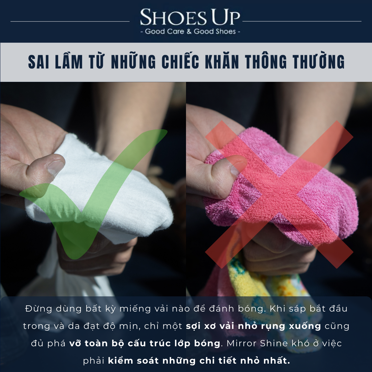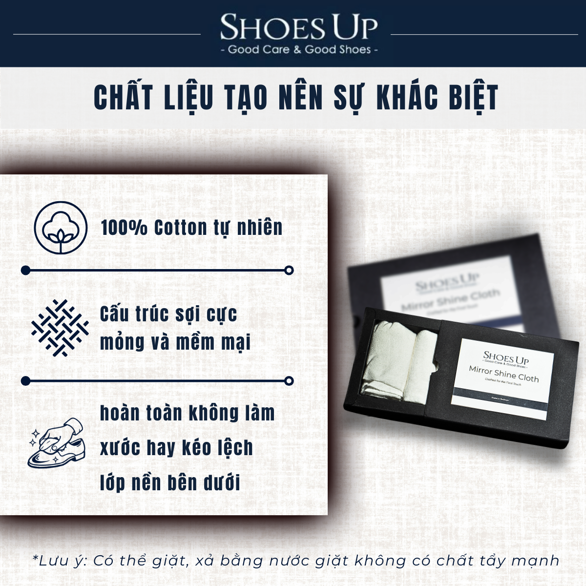 Shoes Up Mirror Shine Cloth - Khăn Cotton chuyên dụng đánh bóng Mirror Shine