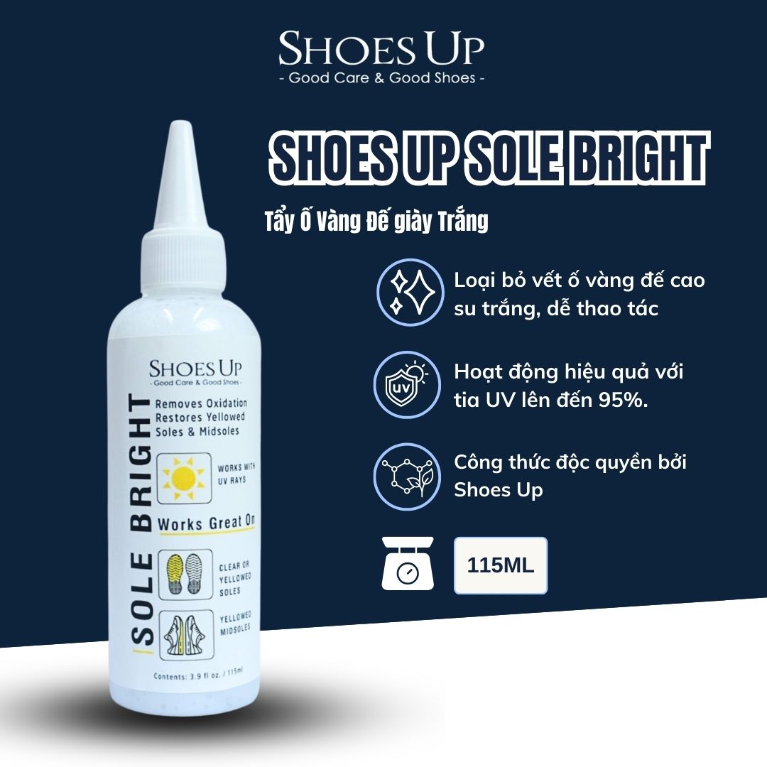 Shoes Up Sole Bright là sản phẩm mới, tuyệt vời giúp bạn dễ dàng tẩy ố vàng trên đế giày chất liệu icy, boost, nhựa, cao su do bị oxy hoá lâu ngày. Mang lại sức sống mới cho đôi giày của bạn.